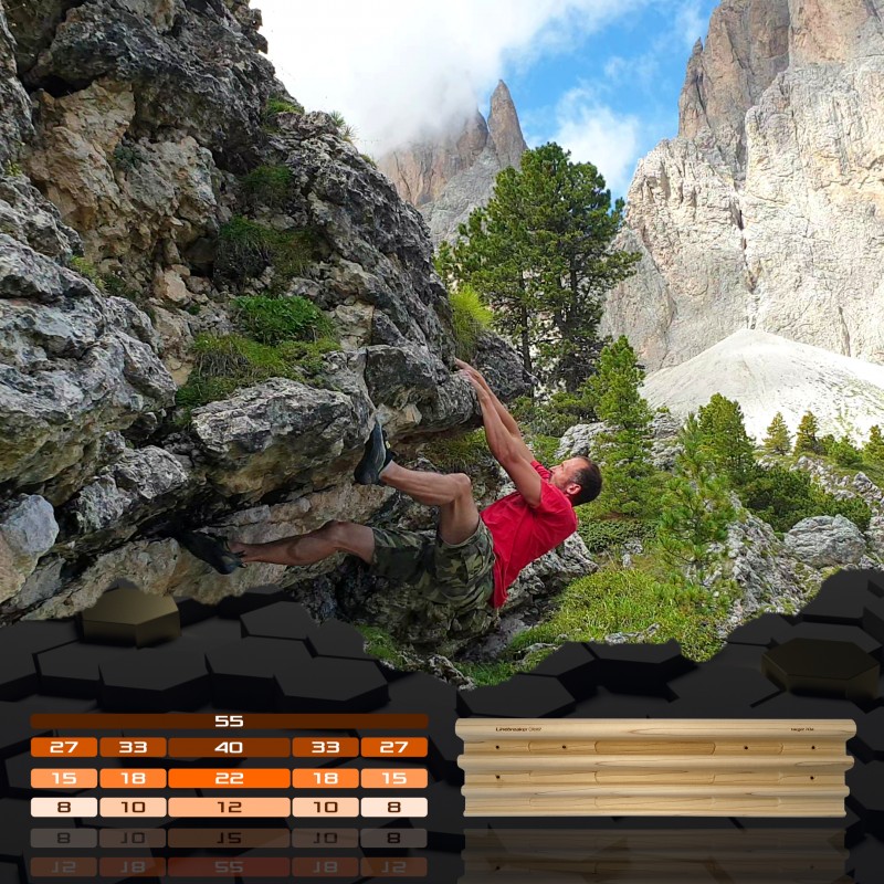 Trainingsboard für Fortgeschrittene und Profis mit sehr ergonomischen Slopern, Leisten und Löchern! Das Board hat guten Grip ohne aber die Haut zu sehr zu beanspruchen.