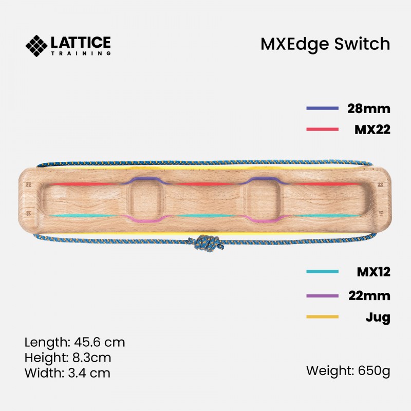 The MXEdge Switch features jugs, a small (MX12) and a large (MX22) edge, as well as two sizes of 2-finger ‘drop pockets’ (28mm, 22mm). No matter your project, the Switch has the holds you need!